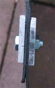 Verschlusstechniken gibt es viele! Die ALU-Variante (bzw. Edelstahl) ist Stand der Technik in 2008 die optimale Lösung. Die Schienenhälften sind mit 4 - 6 Bohungen gut vorbereitet. Verschraubung werden bis zu 10 Nm angeziehen (Plan). Maximalüberlappung (20mm) unter Schiene (Zu beachten: Rhizomenfallen entstehen immer dann, wenn offene Überlappung auf der Innenseite vermieden werden |