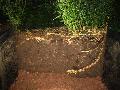 Variation - Hochbeet ![]() Bambus im Hochbeet Schema 1. Rasenniveau 2. Granit oder Sandstein (50x50x80cm Blöcke) 3. Zwischenschüttung (50 cm zw. Stein und Sperre) 4. Rhizomsperre (Durchmesser 1 x 2 Meter) ...innere Bepflanzung Die Zwischenschüttung (3.) kann problemlos bepflanzt werden Rechts: Einfassung Sandstein Alternative: Roter oder Grauer Granit |
